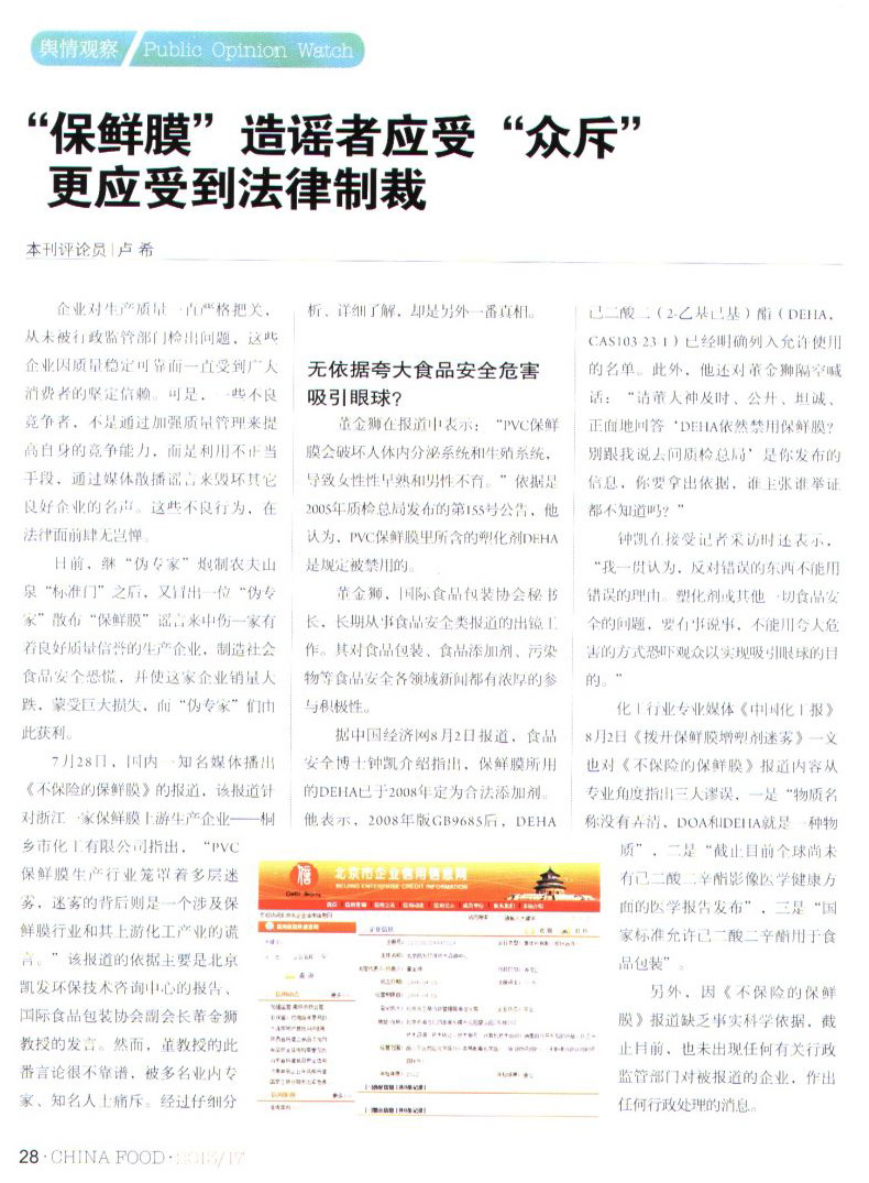 《中國食品》2013年17期發(fā)表了評論員盧希的文章